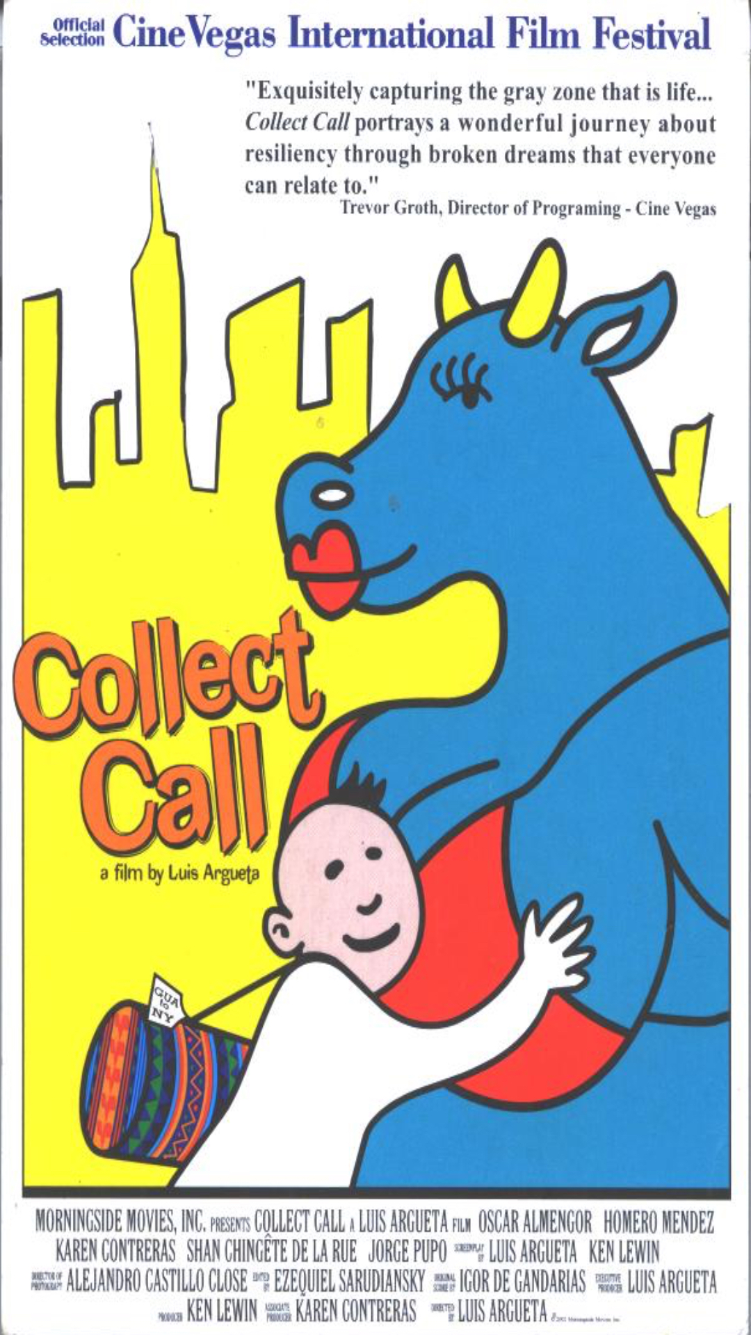 COLLECT CALL (POR COBRAR) Back INFORMACIÓN Thumbnail TÍTULOCOLLECT CALL (POR COBRAR)DESCRIPCIÓNNestor Almengor acude a Nueva York a tratar de seguir adelane con su carrera de actor, que comenzó al interpretar el papel protagonista de la película "El silencio de Neto".REG.AG-085FECHA2002GÉNEROFicción - LargometrajePAÍS DE PRODUCCIÓNEEUU; GuatemalaDURACIÓN76REALIZACIÓNLuís ArguetaPRODUCTORAMorningside Movies Portada e Imagen Still AG-085 Collect call afiche (1) Continuar navegando EL SILENCIO DE NETO GUATEMALA 9.11.03: EL ROSTRO HUMANO DE UNA FIESTA CÍVICA Back to items list