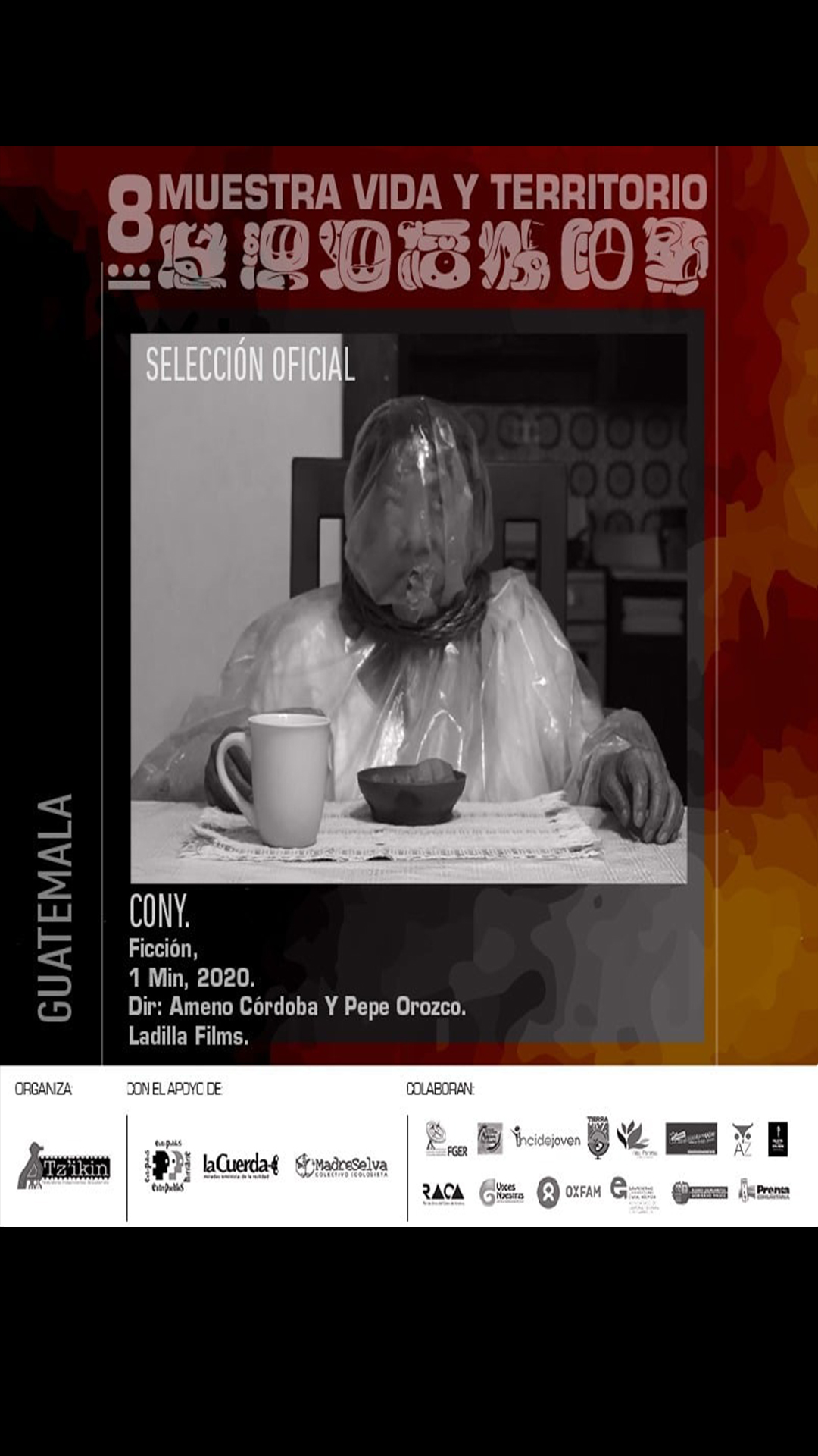 CONY Back INFORMACIÓN Thumbnail TÍTULOCONYDESCRIPCIÓNUna señora trata de seguir con su cotidianidad durante la pandemia, pero al iniciar la noche, extraña a sus nietos.REG.AG-112FECHA2020GÉNEROFicción - CortometrajePAÍS DE PRODUCCIÓNGuatemalaDURACIÓN1REALIZACIÓNAmeno Córdova; Pepe OrozcoPRODUCTORALadilla Films Portada e Imagen Still AG-112 Cony portada AG-112 Cony still Continuar navegando LUIS Y LAURA AGUA: LA SANGRE DE LA TIERRA Back to items list