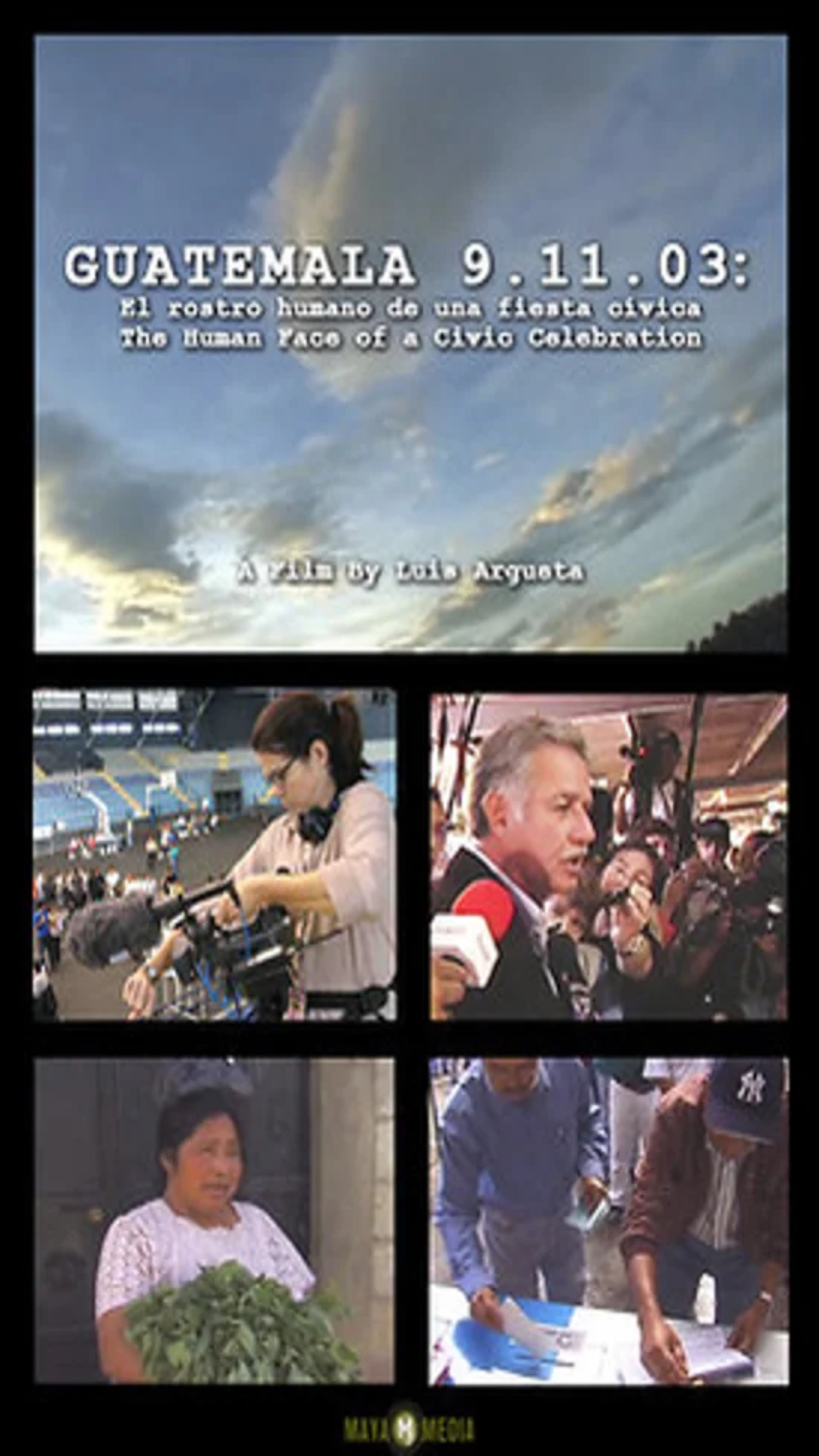 De una forma dinámica moderna "Guatemala 9-11-03: El rostro humano de una fiesta cívica" retrata un país en busca de un futuro democråtico. El 9 de novembre de 2003, a pesar del temor generalizado de que dichas elecciones fueran interrumpidas violentamente, la población asistió a las urnas a depositar su voto en unísono repudio a la candidatura impuesta del ex-dictador General Efrain Rios Montt. Luis Argueta y un grupo de jóvenes cineastas (Grupo 2+2), unieron esfuerzos para dar testimonio personal de un día que ya es memorable en la historia de Guatemala. Por medio de cinco historias de vida paralelas se recrea el día de las primeras elecciones generales del nuevo milenio en Guatemala.